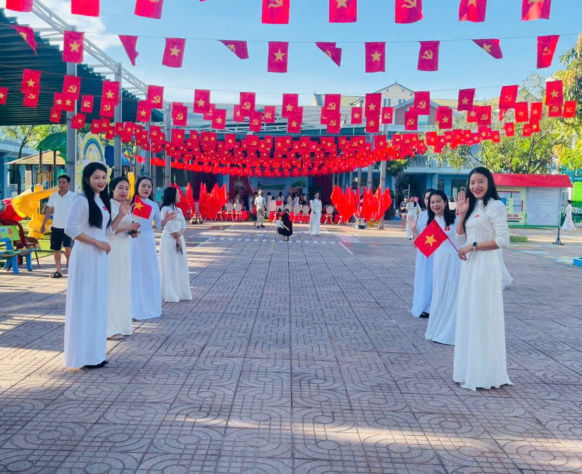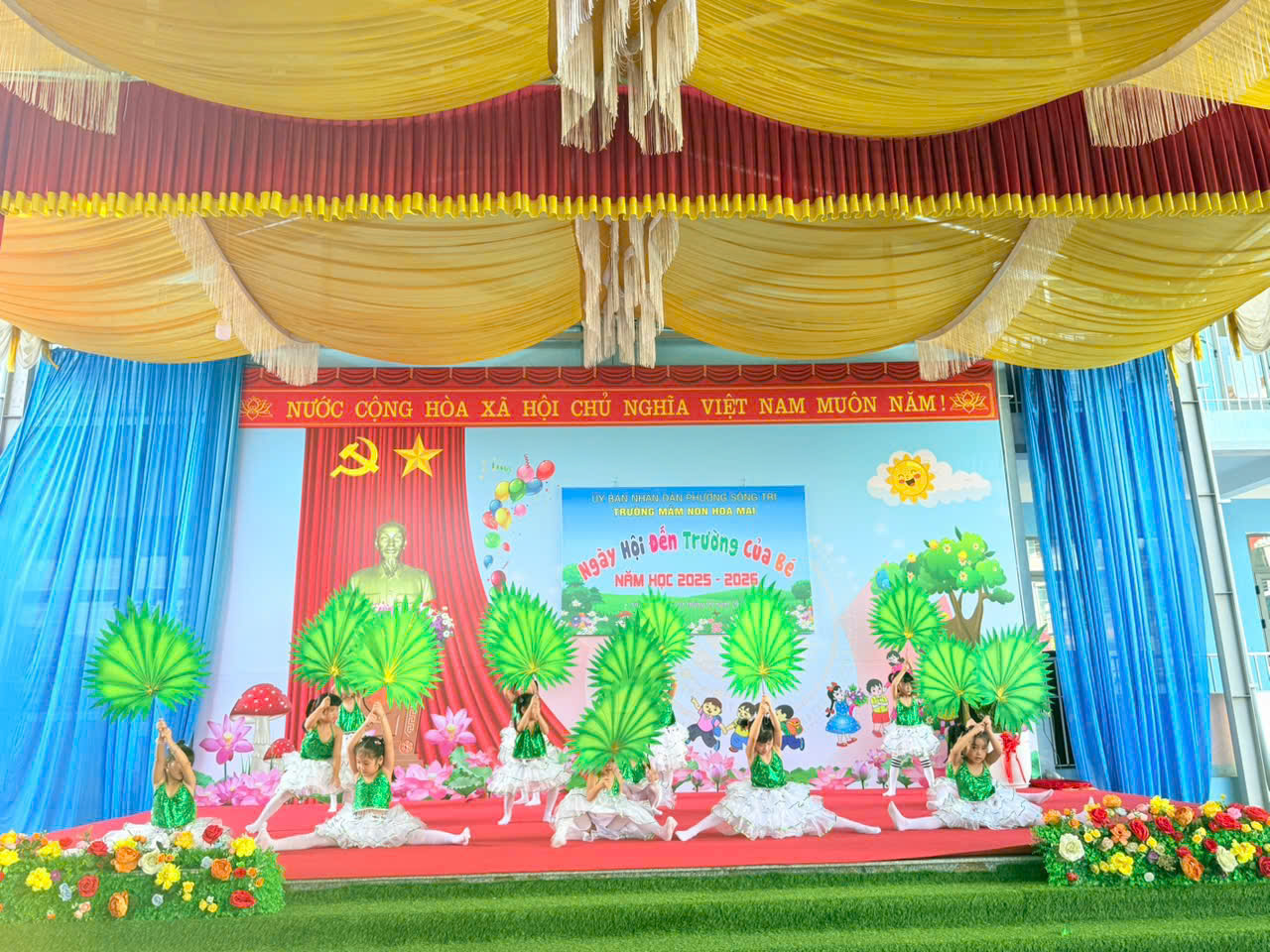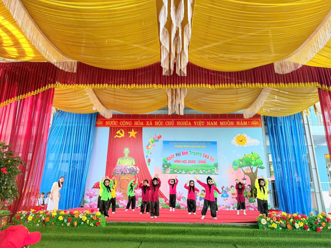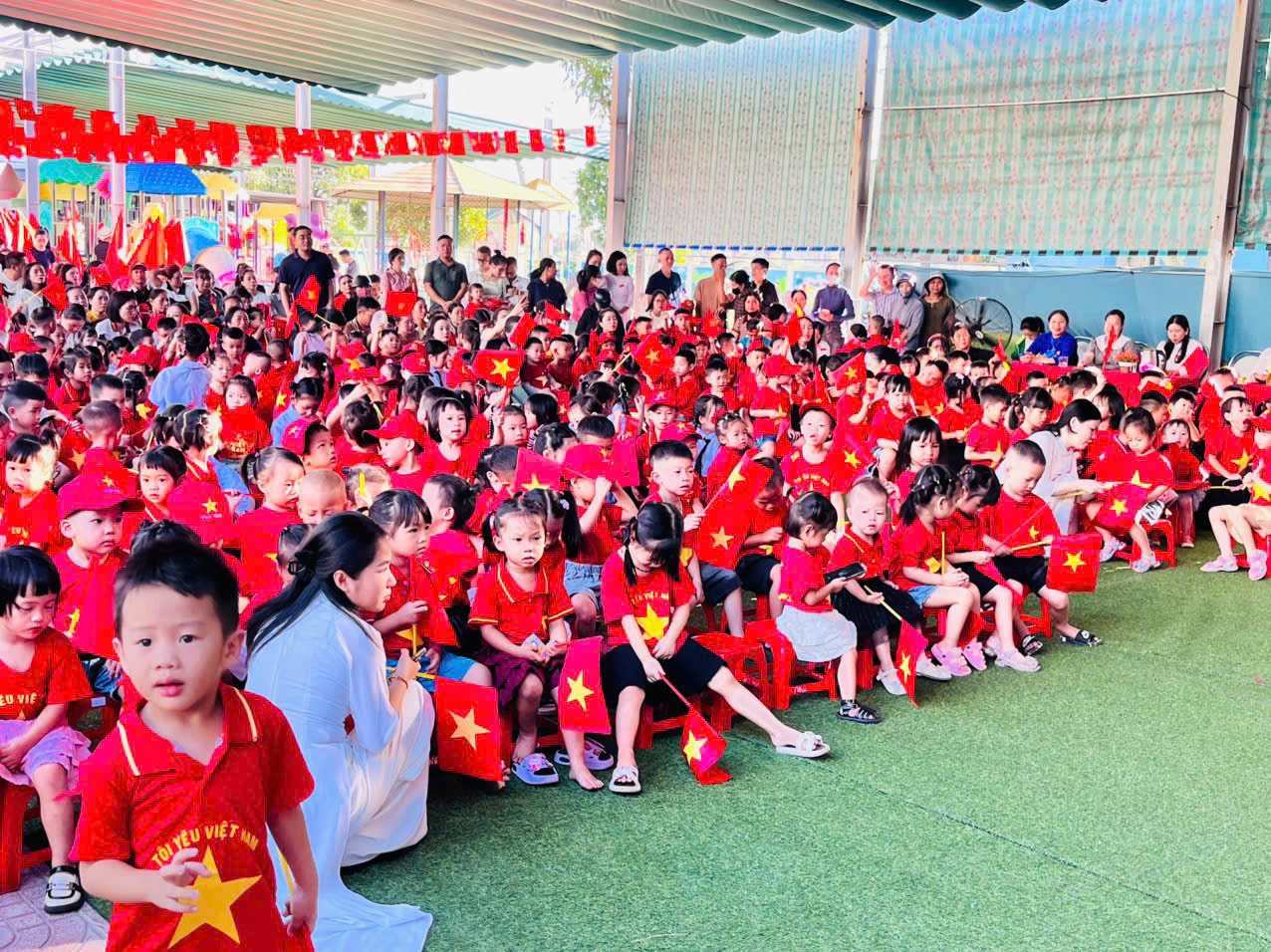 Trong không khí rợp sắc cờ hoa, tiếng trống hội vang lên hòa cùng niềm vui hân hoan. Các tiết mục văn nghệ tập thể sôi động, điệu múa hồn nhiên, đồng ca rộn ràng cùng nụ cười trong veo của các bé đã thắp sáng bầu không khí lễ khai giảng thành ngày hội.