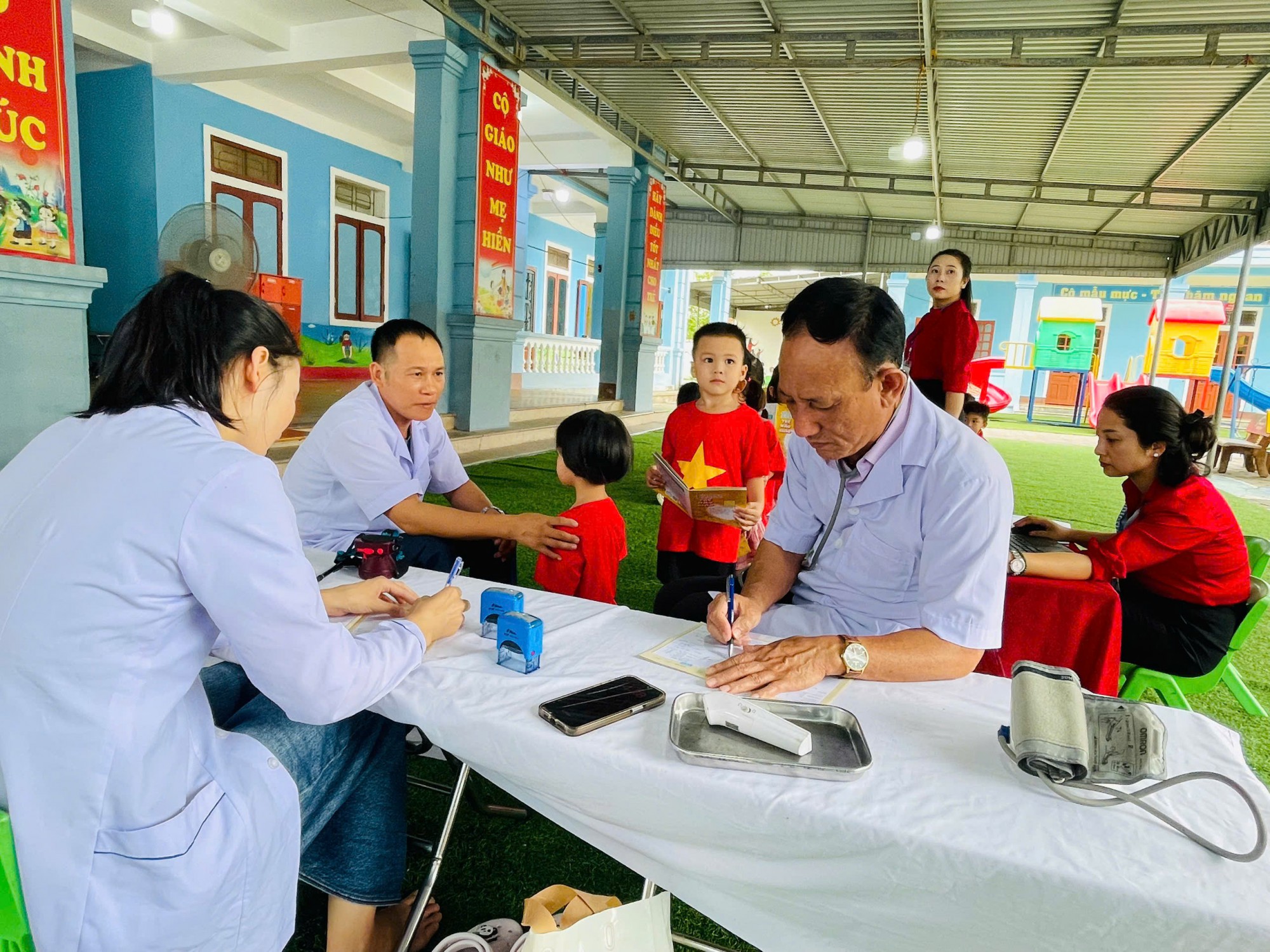 Các nhân viên y tế tiến hành khám tổng quát cho trẻ đo chiều cao, cân nặng, kiểm tra tai- mũi -họng, răng - miệng, da liễu. Kết quả được ghi chép cẩn thận vào sổ theo dõi sức khỏe của từng trẻ. Những trường hợp có dấu hiệu bất thường sẽ được nhà trường thông tin sớm để phụ huynh phối hợp chăm sóc và khám chuyên sâu khi cần thiết.