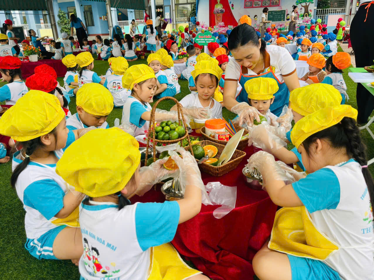 không khí vui tươi, trẻ được trải nghiệm những hoạt động thiết thực, bổ ích như tự tay chuẩn bị, chế biến và thưởng thức các món ăn do mình tạo ra. Mỗi món ăn không chỉ là sự kết hợp hài hòa giữa hương vị mà còn là cơ hội để trẻ học hỏi về những giá trị văn hóa ẩm thực.